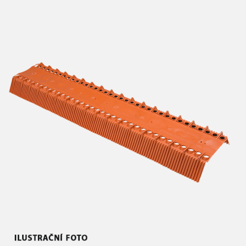Speciální součást hřebene, využívaná jako ventilačně těsnicí část na různé typy střešních krytin a sklonů střešních rovin. Zabezpečuje těsnost střechy v místě hřebene před negativním vlivem sněhu, deště, vlhkosti, prachu a dýmu. Horní část je vybavena speciálními ventilačními otvory a boční lamelou.