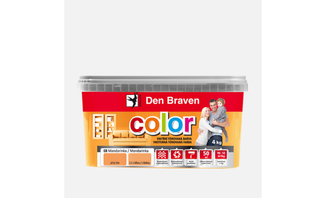 Jednosložkový, matný, vodou ředitelný, klasický nátěr na bázi disperze a chemických přísad, určený pro nátěry interiérů.  Tyto tónované barvy jsou ve více jak ve 20 odstínech, které lze mezi sebou kombinovat až na 64 různých odstínů. Jednotlivé odstíny jsou vzájemně mísitelné – doporučené kombinace najdete na naši vzorkovnici. Nátěr dominuje velkou kryvostí, už po prvním nátěru. Je vhodná pro aplikaci na vyzrálé omítky. Charakteristika