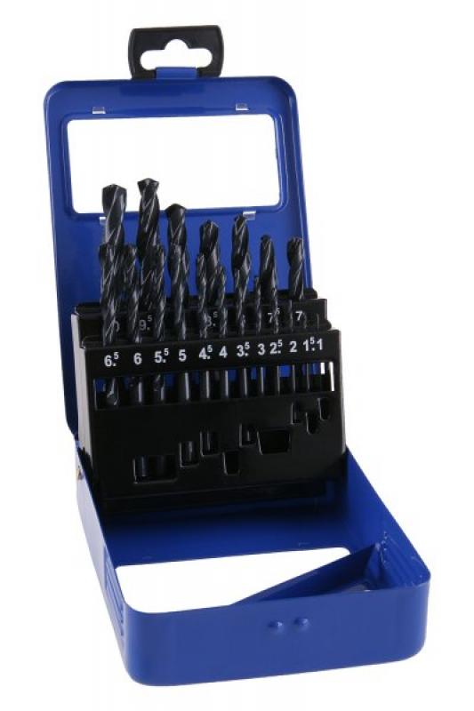 Sada vrtáků do kovu HSS, splňující normu DIN 338, vrtáky jsou vyrobené z vysoce kvalitní rychlořezné oceli (HSS), Wolfram 4%, Molybden 3%, Chrom 4%, Vanadium 1%. V sadě 19 ks, průměr 1,0 - 10,0 mm.