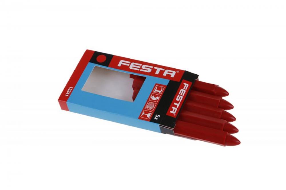 Sada pastelových popisovačů, délka 120 mm, v balení 5 ks - červená. Vhodné pro: zdivo, kovy, dřevo, sklo, plast, keramika.