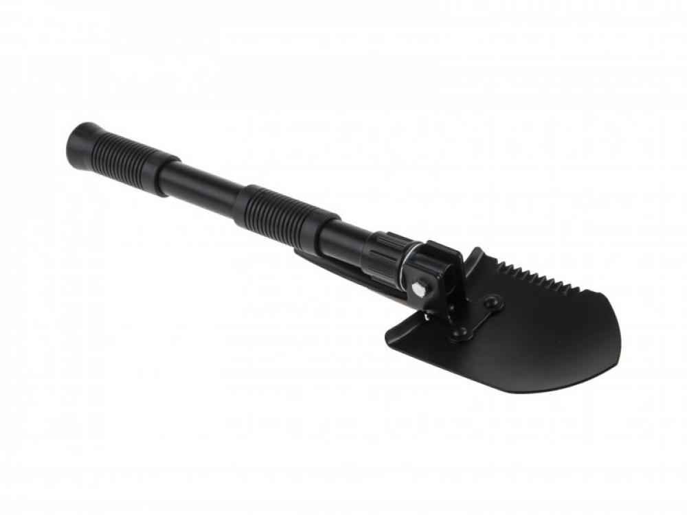 Malá skládací lopatka s hrotem. Lze použít jako lopatka, rýč, motyka, pila, víceúčelový hrot. Dvě gumové protiskluzové rukojeti. Vyrobeno z ocelového plechu a trubek. Odolný nylonový obal s poutkem na opasek.