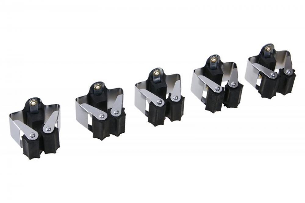 Balení obsahuje 5 ks držáků, které snadno přišroubujete na zeď. Velmi jednoduchá montáž pomocí přiložených hmoždinek a vrutů. Nářadí pak jednoduše postavíte na podlahu a násadu zasunete mezi čelisti držáku. Hrábě, motyka, lopata, rýč, sněhové hrablo, koště a další nářadí s násadami. Materiál: pozinkovaný plech, pružný měkký plast.