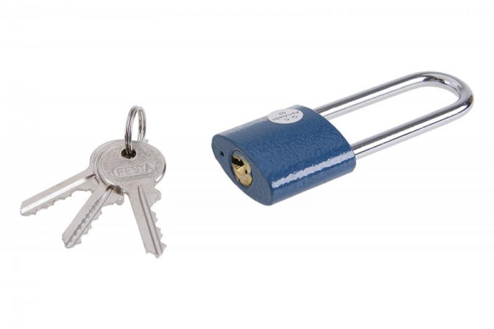 Ocelové tělo zámku, mosazná vložka, 3 klíče, Zesílený prodloužený oblouk z tvrzené oceli pro lepší odolnost proti prořezání.