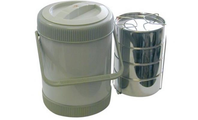 Box na ukládání a přepravu jídla, složený ze 4 dílů, které jsou navzájem propojené držadlem, vybaven termoobalem, který udrží déle jídlo...