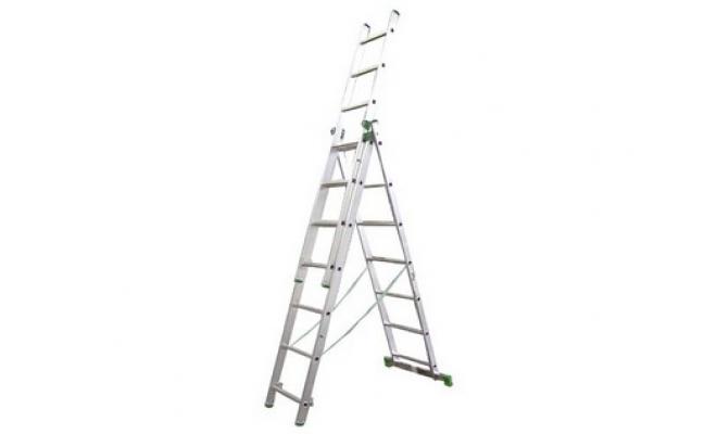Trojdílný opěrný žebřík 5,13 m je potřebný doplněk pro práci ve výškách doma i na zahradě, bez něhož se neobejde žádný kutil.