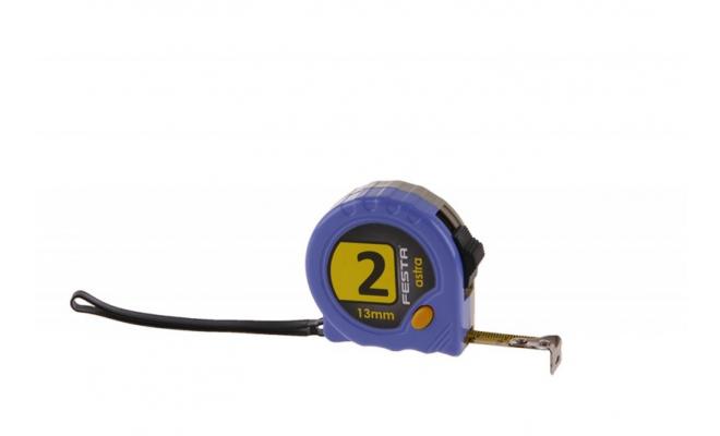 metr svinovací v prodejním boxu - různobarevné provedení kalená páska, dobře čitelná stupnice, dvě brzdy, poutko, klip na opasek