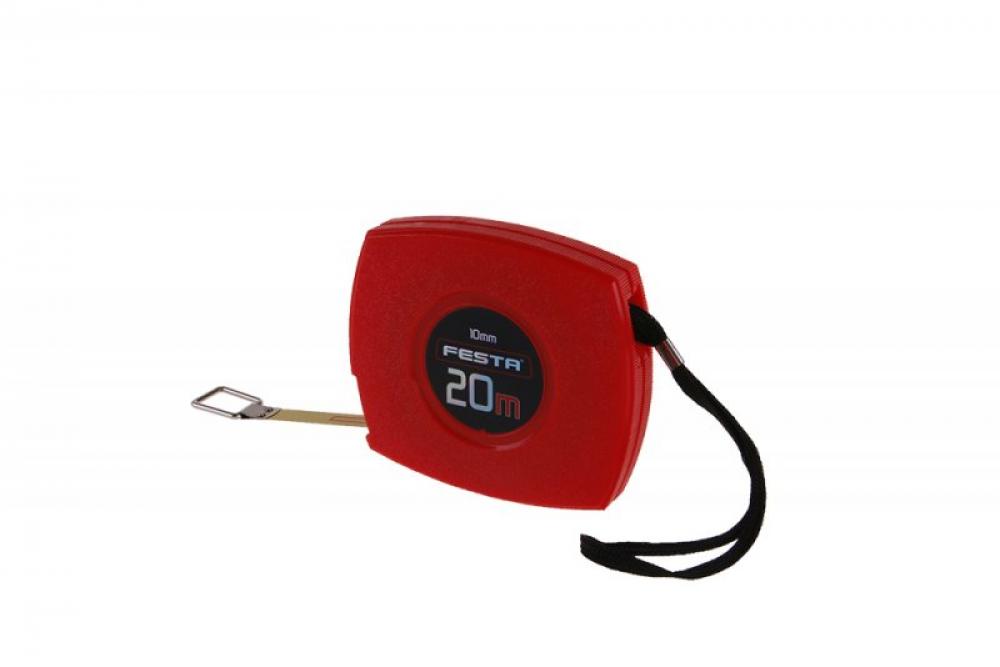 Kvalitní a přesné ocelové pásmo, kalená páska s očkem, CE certifikát - vhodné ke kalibraci, sklopná navíjecí ručka, poutko.