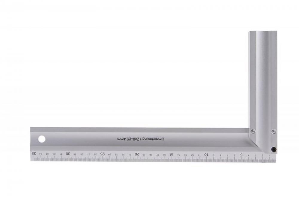 Hliníkový úhelník, měřící rameno se stupnicí v mm, zesílený profil, kvalitní zpracování.