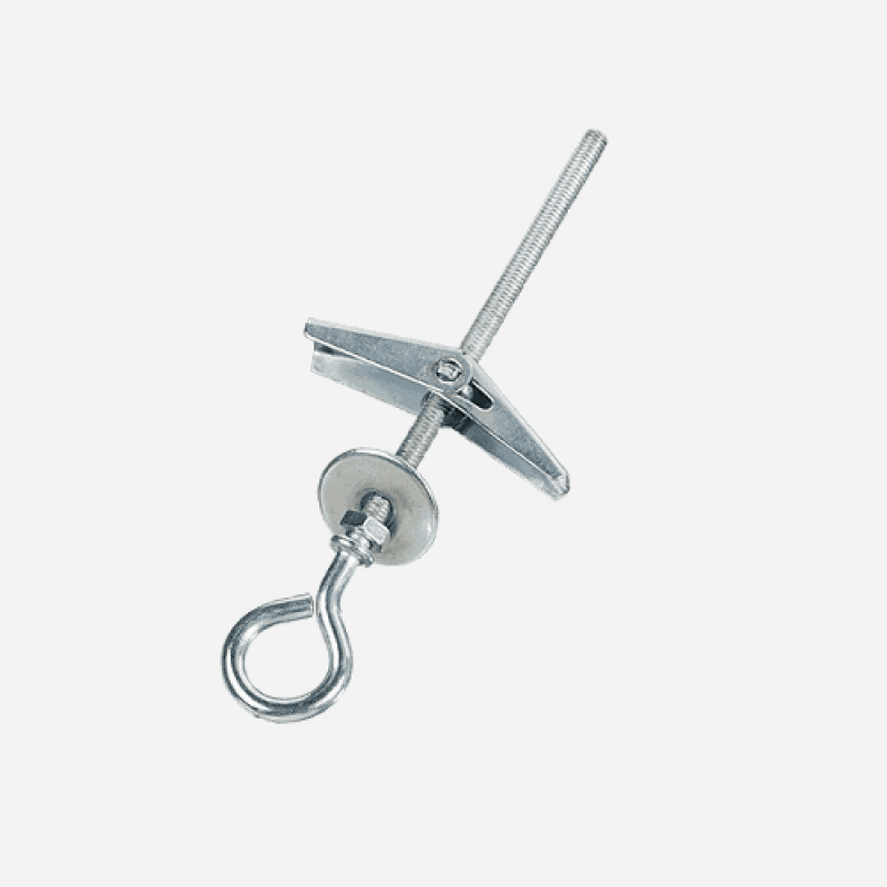 Dvouramenná, pružinová, rozkládací příchytka s okem pro snadné zavěšení drobných dekoračních prvků (květináče, látkové boxové šatníky aj.) Rovněž lze použít do stěn k zavěšení drátěného programu v kuchyních, koupelnách, dílnách apod. Materiál kotvy – ocel, bílý zinek. Použití