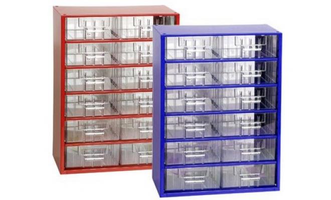 rozměry (Š x V): 30,5 x 42 cm zásuvky: 12 středních materiál: kov, plast barva: červená, modrá Kovová ukládací skříňka s plastovými zásuvkami 1 velikosti je vhodná pro přehledné skladování drobných předmětů a součástek.