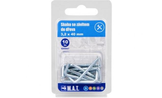 Skoba se závitem do dřeva 40x3,2mm Zn (10ks)