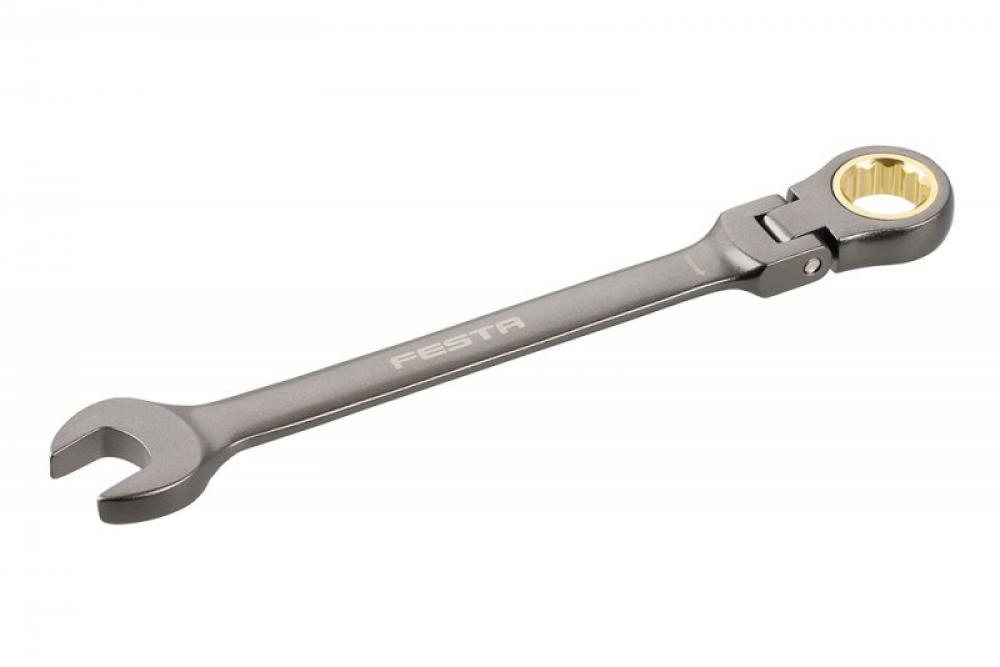 Ráčnové klíče FESTA s kloubem pro použití pod úhlem s výhodou rohatky (ráčny) jsou vyrobeny kováním z kvalitní chromvanadiové oceli. Tato ocel povrchově upravená matným tvrdochromem pro dosažení optimální povrchové tvrdosti a odolnosti vůči korozivním vlivům. Rohatku ráčny klíče tvoří 72 kalených zubů, záběr po 5-ti obloukových stupních. Kvalitou, tvrdostí a přesností přesně odpovídají normě DIN/ISO.