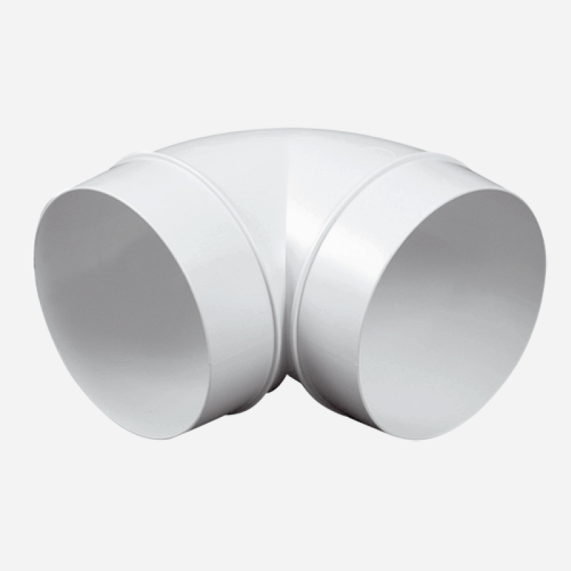 Koleno vodorovné kulaté 90° 90° 2xØ100 ABS 15 ks 90° 2xØ100 mm bílá