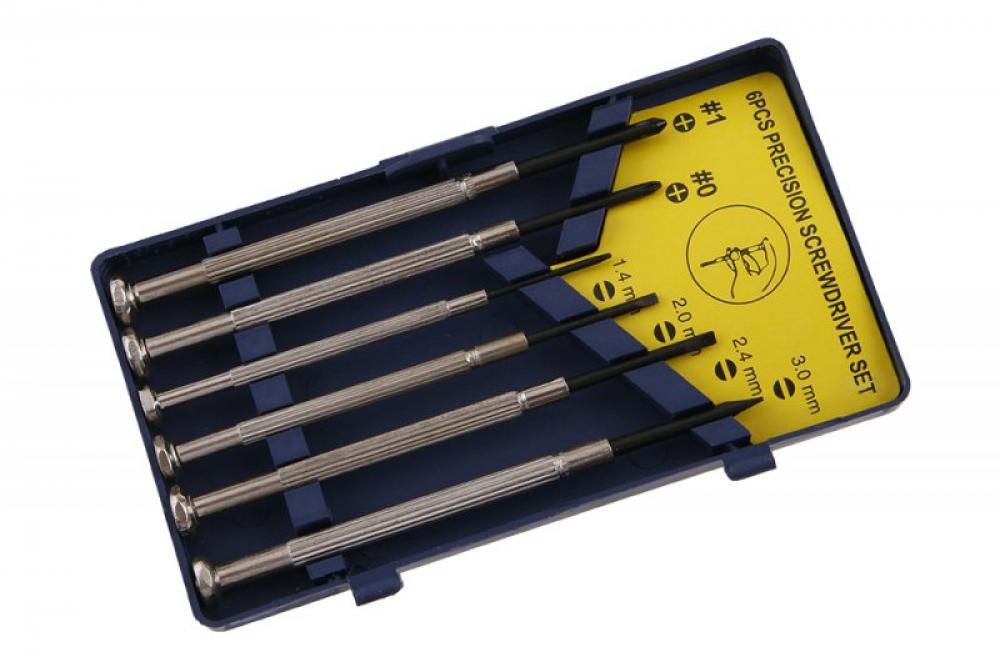 Sada nejpoužívanějších tvarů hrotu a velikostí šroubováků pro jemnou mechaniku a optiku (plochý 1,422,4 3 + PH0, PH1). Pro hobby použití.
