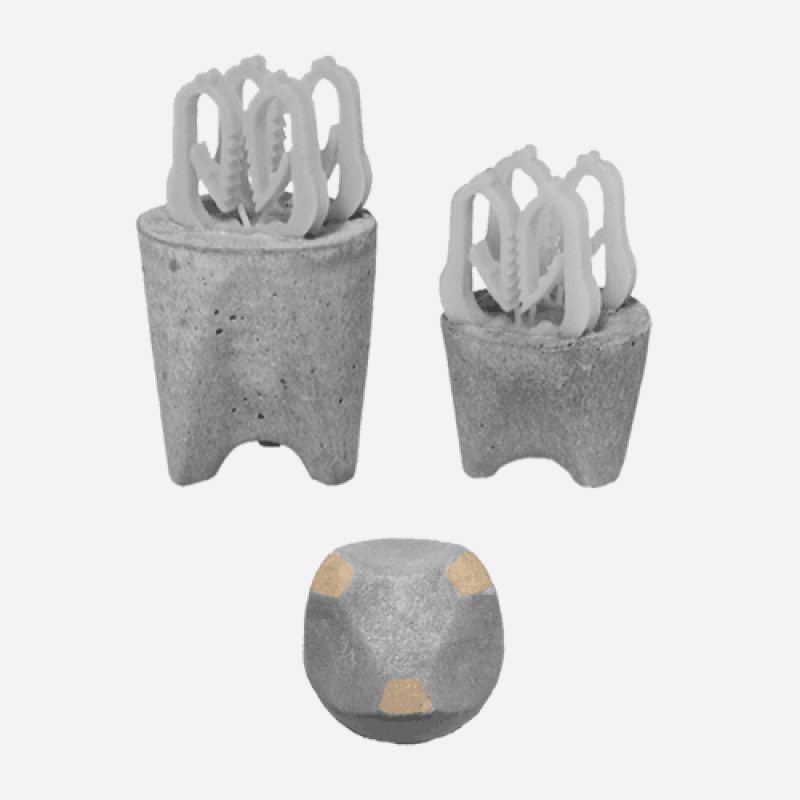 Distanční prvek z betonu, doplněný skleněnými vlákny. Betonky jsou opatřeny plastovou svorkou, která zajišťuje snadné a rychlé upevnění i na husté armování. Prvek se vyznačuje vysokou únosností. Možnost použít pro vodorovnou i svislou výztuž. Více informací na www.denbraven.cz.