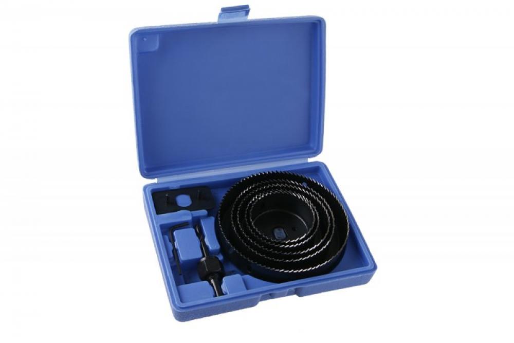 Sada vykružovacích pil 8ks do dřeva a sádrokartonu, průměr: 64,76,89,102,127 mm, inbus+hlavička.