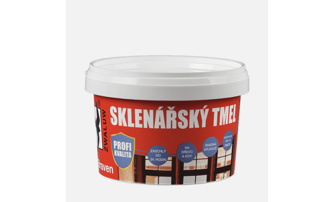 Jednosložkový tmel na bázi lněného oleje, anorganických pigmentů a plnidel v pojivu. Vlastnosti
