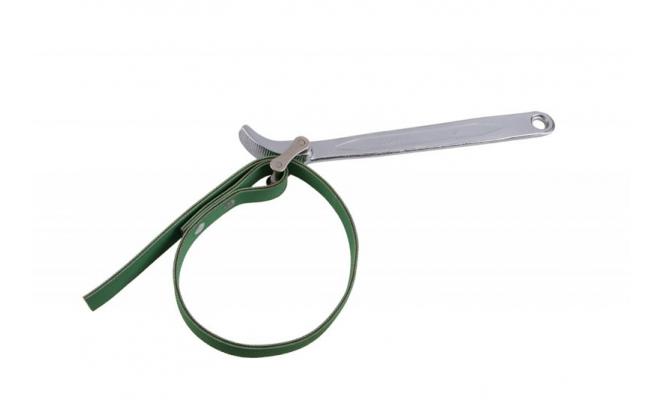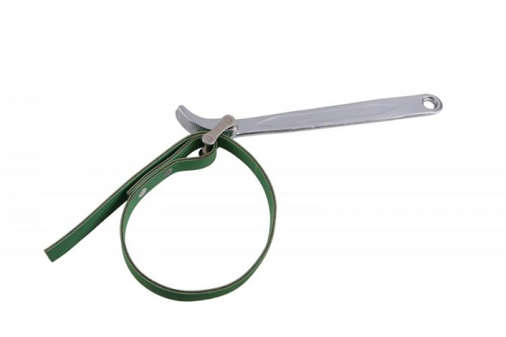 Ocelový klíč s odolným gumotextilním stavitelným popruhem pro uvolňování filtrů a další nestandardních nádob.