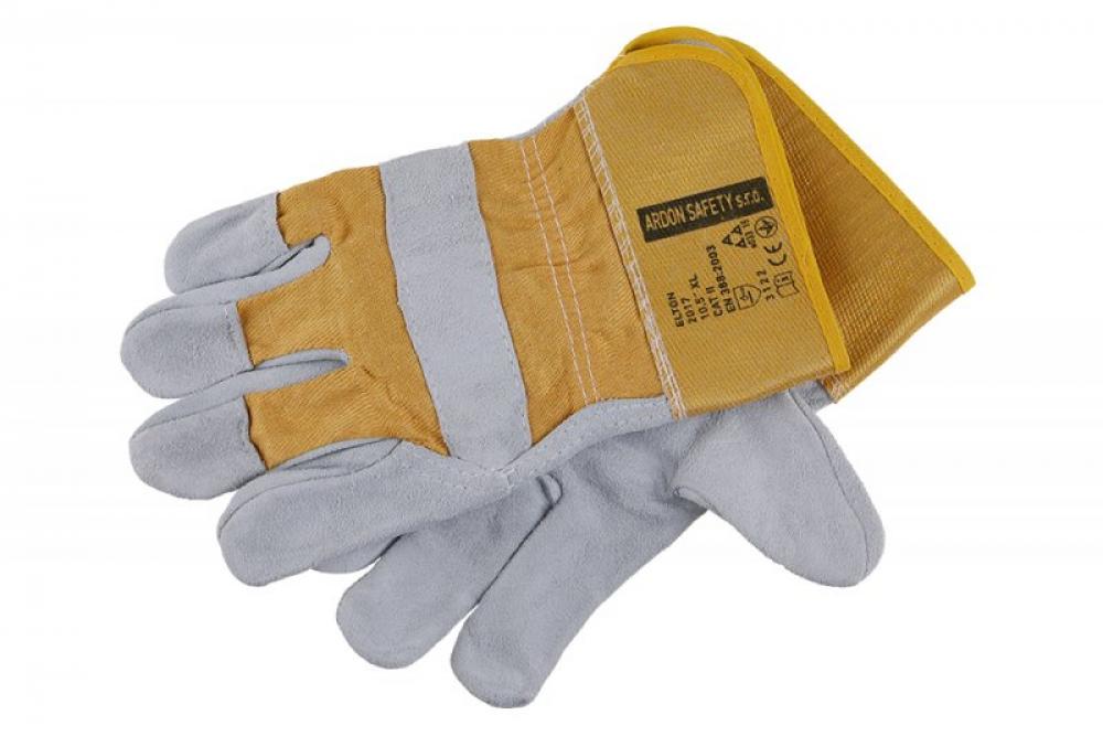 Kvalitní šedá hovězí štípenka, hřbet z červené bavlny, vyztužená manžeta, CE EN 388, vel. 11.