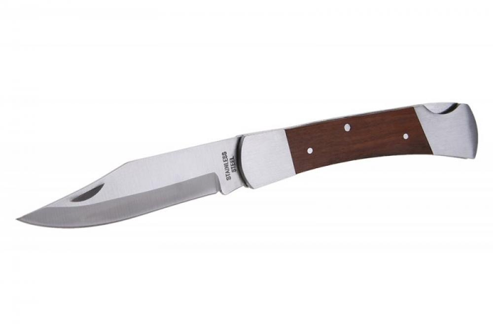 Kapesní zavírací nůž s pojistkou proti samovolnému zavření čepele, čepel z nerezové oceli, dřevěná rukojeť, kvalitní nýtování, délka čepele 120mm, blistr.