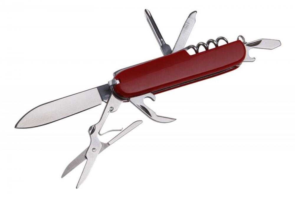 Kapesní multifunkční zavírací nůž, plastová rukojeť, čepele a ostatní nástroje z nerezové oceli, kvalitní nýtování, délka čepele 85mm, blistr.