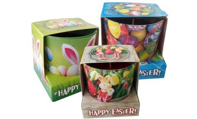 Svíčka vonná sklo VELIKONOCE 325g (hoří 25 hod) mix dekorů