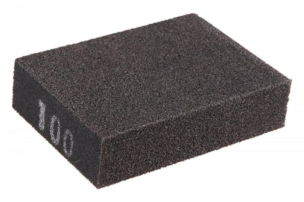 Brusná houba, podklad : vysoce elastická houba, zrnitost: 100, druh zrna: karbid křemíku, pojivo : pryskyřice, použití : mezibroušení laků, broušení barev, plniv a starých laků, broušení dřeva, kovu,...