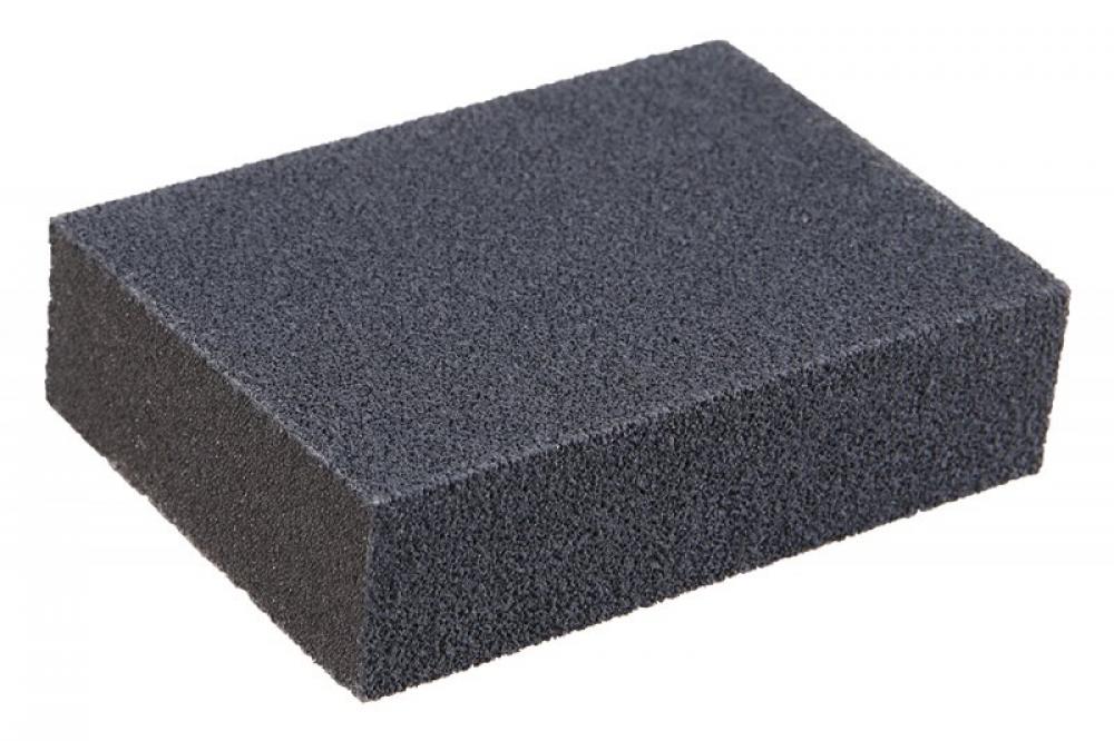 Brusná houba, podklad : vysoce elastická houba, zrnitost: 180, druh zrna: karbid křemíku, pojivo : pryskyřice, použití : mezibroušení laků, broušení barev, plniv a starých laků, broušení dřeva, kovu,...