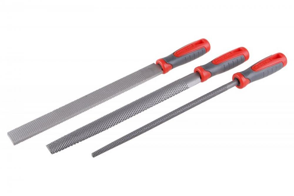 Pracovní délka: 3ks/300mm Hrubost:2 Materiál: Tvrzená ocel (40HRC) Rukojet: PP s měkčenou PTR gumou.