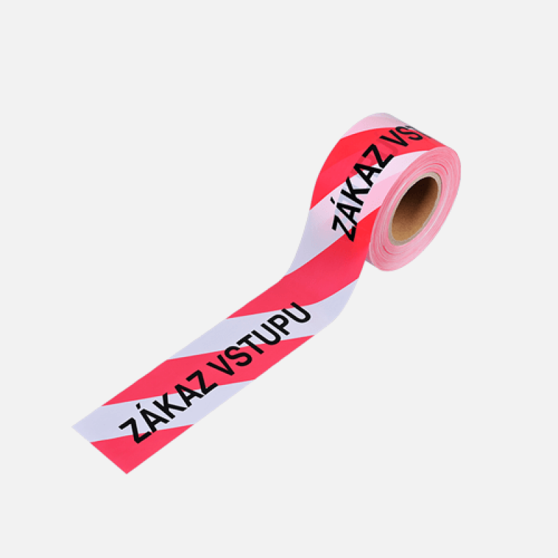 Bariérová páska, 75 mm x 250 m, červenobílá s potiskem ZÁKAZ VSTUPU