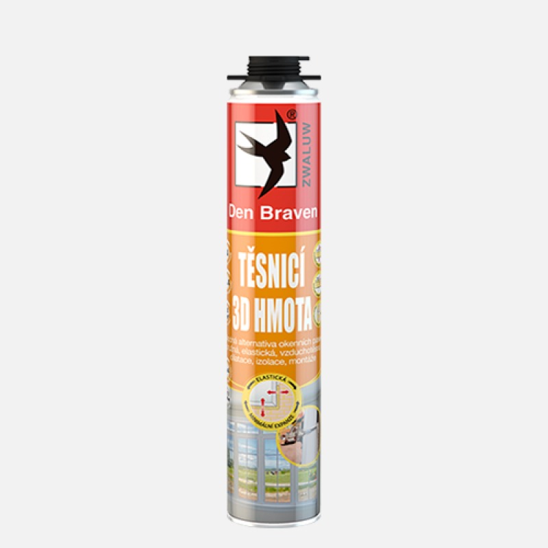Pružná 3D pěna je jedno komponentní, víceúčelová PUR pěna, speciálně vyvinuta pro vyplňování spár s velkým dilatačním pohybem, objemovou změnou podkladu, s požadavkem na minimální propustnost vodní páry, vysokou pružnost a zvukovou izolaci.