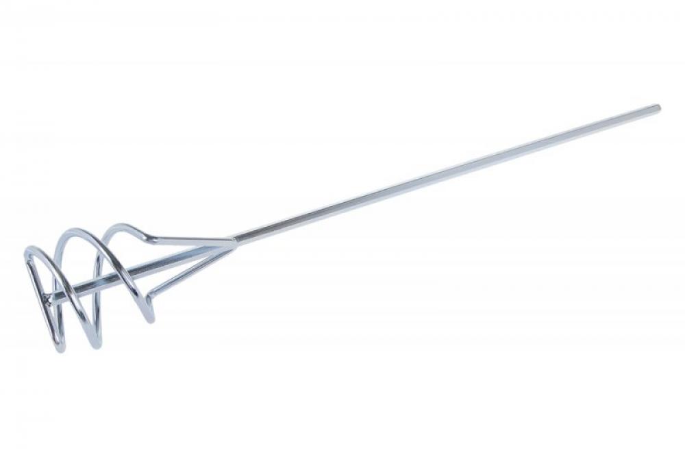 Míchadlo spirála - drát (metla), pozinkované, rozměr: 80 x 500 mm - šestihran, použití: pro důkladné rozmíchání lepidel na obklady, spárovaných hmot, lepících malt, hotových omítek, mazaniny,...