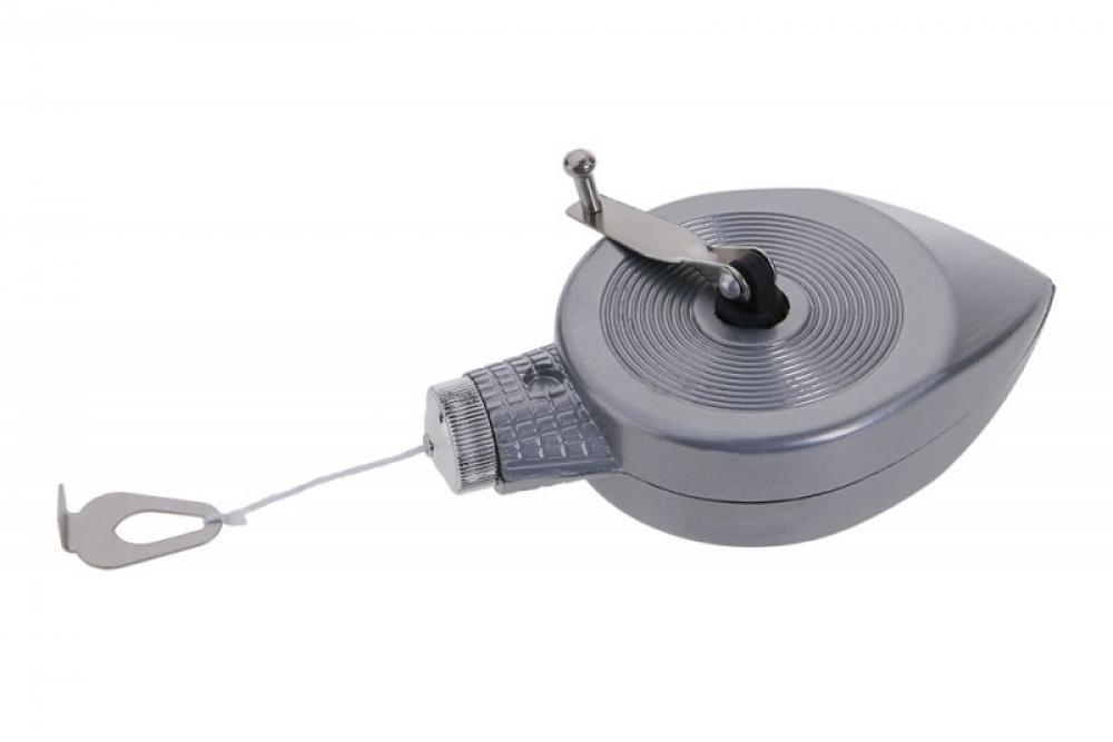 Navíječ kovový, délka provázku 30m, použití : označení přechodů - linií ve stavebniství ,malířství, SDK,..., po naplnění přiloženým pudrem ( modrý - lze doobjednat : modrý 37096, světle-modrý 37094, červený 37097, světle-červený 37095, černý 37098), postup : přiloženým pudrem naplníme navíječ, protřepáním a opakovaným vysunutím a opětovným navinutím provazku jej probarvíme, po-té ve dvou napneme provázek v potřebném místě vyznačení linie a lehve brnkneme - tím se pudr zachycený na provázku nanese v tenké vrtstvě na značený materiál, pak provázek navineme, popř. opět doplníme pudrem, balení : blistr s eurootvorem.