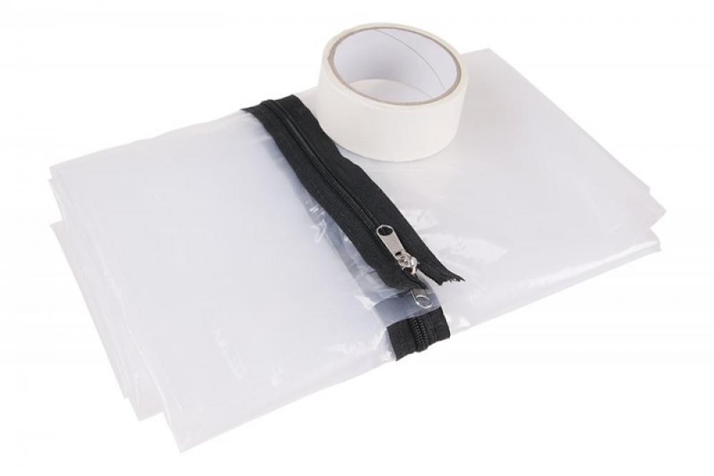 Velice účinná a praktická uzávěra, vyhnete se znečištění přilehlých místností. Rozměr fólie 120 cm x 220 cm. Tloušťka fólie 100 µm. Dodávána se zipem a samolepicí páskou 45 mm x 25m. Opakovaně...