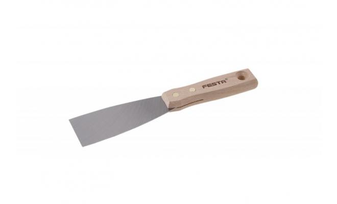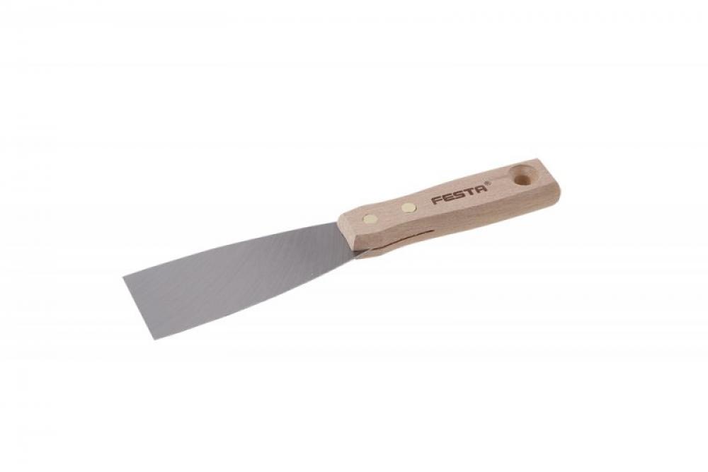 Malířská stěrka (špachtle) s broušeným ocelovým břitem a s dřevěnou nýtovanou rukojetí. Malířské stěrky se použivají pro zapravování děr, zeškrabavání přebytečného materiálu apod. Šířka břitu: 50mm