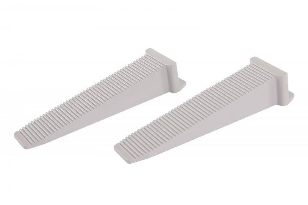 nivelační systém pro přesnou pokládku dlažby a obkladů odstraní případný výškový rozdíl mezi pokládanými dlaždicemi ve spáře nivelační systém obsahuje - distanční spony různých tlouštěk a nivelační klínky (opakovaně použitelné) aplikace - pomocí kleští 37177 šířka spony udává šířku spáry aplikace klínků pomocí kleští srovná dlaždice, po zaschnutí se horní část spony s klínkem odstraní - bílou gumovou palicí nebo ukopnutím rozměry a množství uvedeny v názvu výrobku