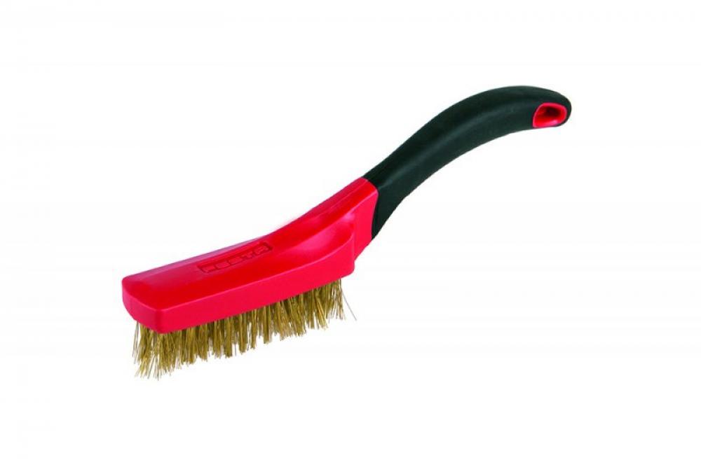 Ruční mosazný kartáč, základ konstrukce kartáče tvoří kvalitní polypropylen, rukojeť je potažena TPR gumou, která zabraňuje klouzání i v případě mastných rukou. Kvalitní uchycení drátkových svazků v tomto případě v pěti řadách. Otvor v rukojeti pro zavěšení. Použití pro čištění dílů, součástek a komponentů, vhodné na nerez. Lze použít pro čištění grilovacích roštů.