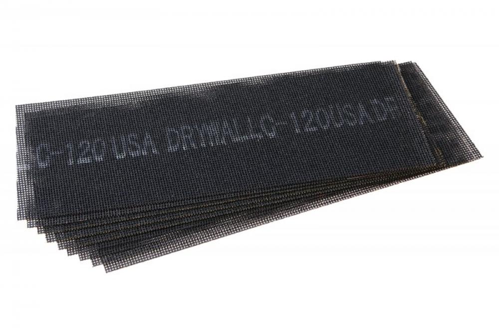 Brusná mřížka 115 x 290 mm, zrn.120, 10ks/sada. Brousicí mřížka je konstruována tak, že na nosnou tkaninu ze skelných vláken jsou pryskyřicí přilepena brousicí zrna karbidu křemíku. Výhoda mřížkové struktury proti běžným brousicím papírům spočívá v tom, že se nezanáší odbroušeným materiálem.