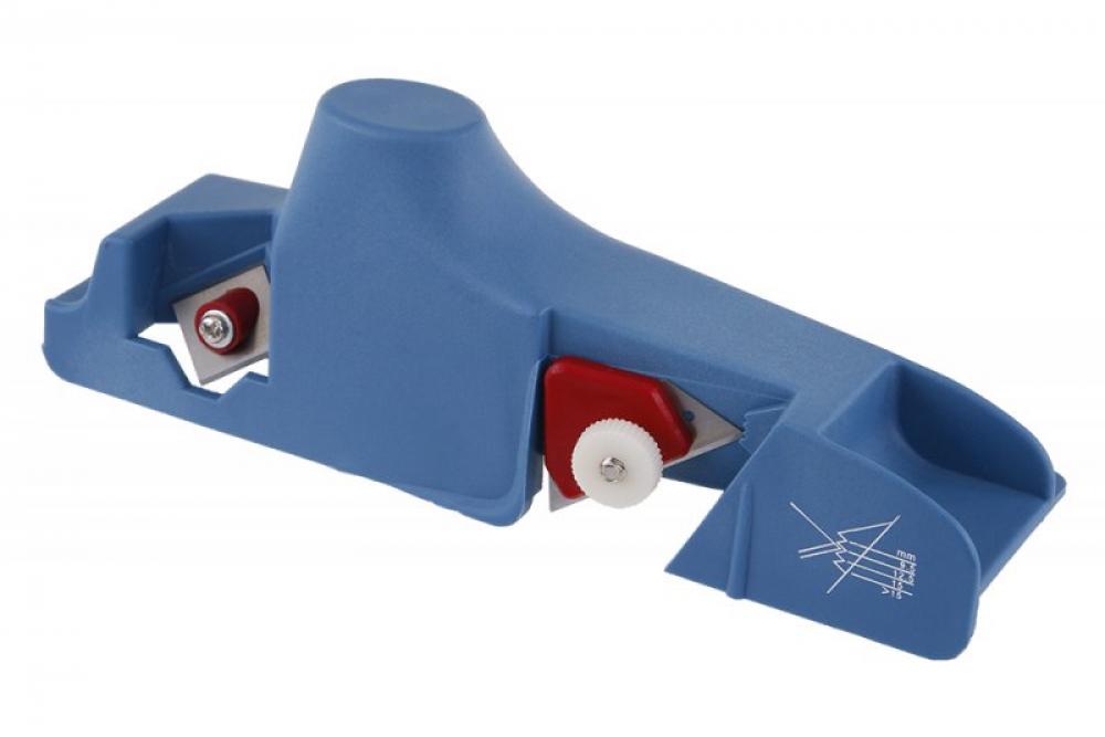 Plastový hoblík na sádrokarton s ocelovými břity, materiál : kvalitní tvrdý plast, přesná hrana, kvalitní uchycení nožů, použití : pro ořez hran sádrokartonů - vytvoření hrany (plochy) pro přilnutí spárovacího brousitelného tmelu, balení : papírový box s eurootvorem.
