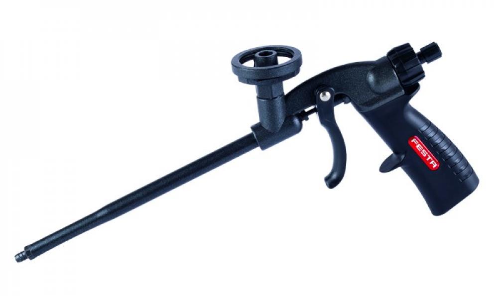 profesionální celokovová pistole na PU (polyuratové) pistolové pěny s teflonovou povrchovou úpravou plynulá regulace množství pěny, citlivá spoušť pro přesné a pohodlné dávkování, plastové aplikační trubičky pro přesné nanesení pěny na požadované místo závit pro uchycení s teflonovou vrstvou pro snadnější čištění teflonová kulička ventilu, vyměnitelná tryska 38030