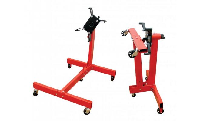 Stojan pro motory - skládací je zařízení sloužící pro uchopení automobilových motorů když jsou vyjmuty z vozidla. Toto zařízení je konstruováno pro zpřístupnění motoru k opravě a/nebo výměně. Součástí stojanu je zajišťovací otočný talíř, který umožňuje otáčení motoru pro snadnější přístup. Stojan je vybaven kolečky k zajištění přesouvání po hladkém rovném podkladu. Nosnost 675 kg.