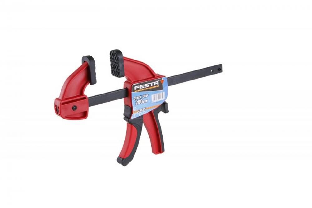 svěrka rychloupínací tvrzená ocelová lišta, profilovaná ramena z ABS plastu - neklouzavé gumové svírací plochy rychlé a přesné nastavení, pevné a silné sevření pomocí páky jednoduchý mechanismus pro rychlou a snadnou úpravu svěrky z upínání na rozpínání pro jednoduchou, rychlou a pevnou fixaci jak v profesním tak i domácím použití