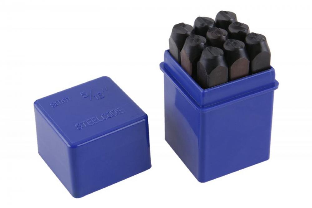 Ruční raznice - číslice, kvalitní uhlíková ocel - pevnost do 800 N/mm2, zakalené hroty - vysokká tvrdost, rozměry : výška písmen - 8 mm , Typy znaků podle DIN 1451, balení : plastový box.