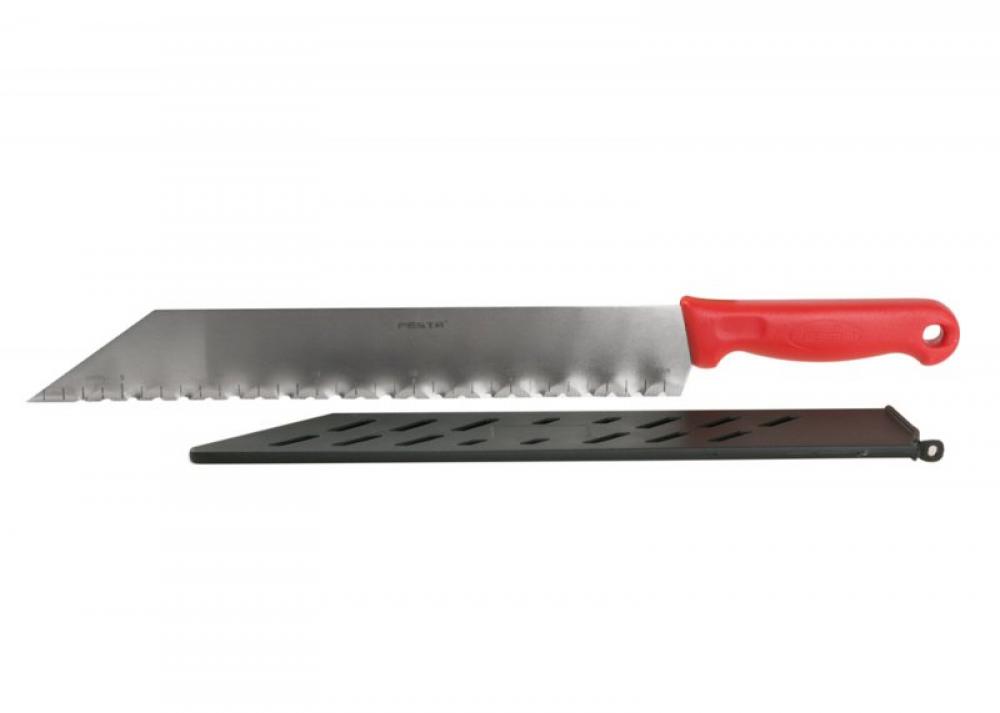 Nůž na zateplovací materiály - polystren, minerální vata, možné použít také na molitan, gumu atd., speciální ostří, široká čepel, ergonomická rukojeť, délka čepele 350mm, plastová závěs.