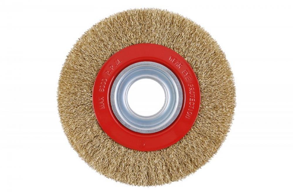 Rotační kartáč - okružní, provedení : vlnitý drát, kartáče FESTA zaručují kvalitní použité materiály i zpracování, drát 0,3 mm - pomosazený, průměr 150 mm, uchycení otvor 32 mm (včetně redukčních kroužků 12,7mm - 1/2, 15,8 mm - 5/8, 19 mm - 3/4, 22,2 mm a 25,4 mm - 1), počet drátů 7200, délka drátů 30mm, maximální otáčky za min. 6000, vhodný pro zámečnické a kovoobráběcí práce, odstraňování rzi, barev, leštění.… , balení : papírový box.