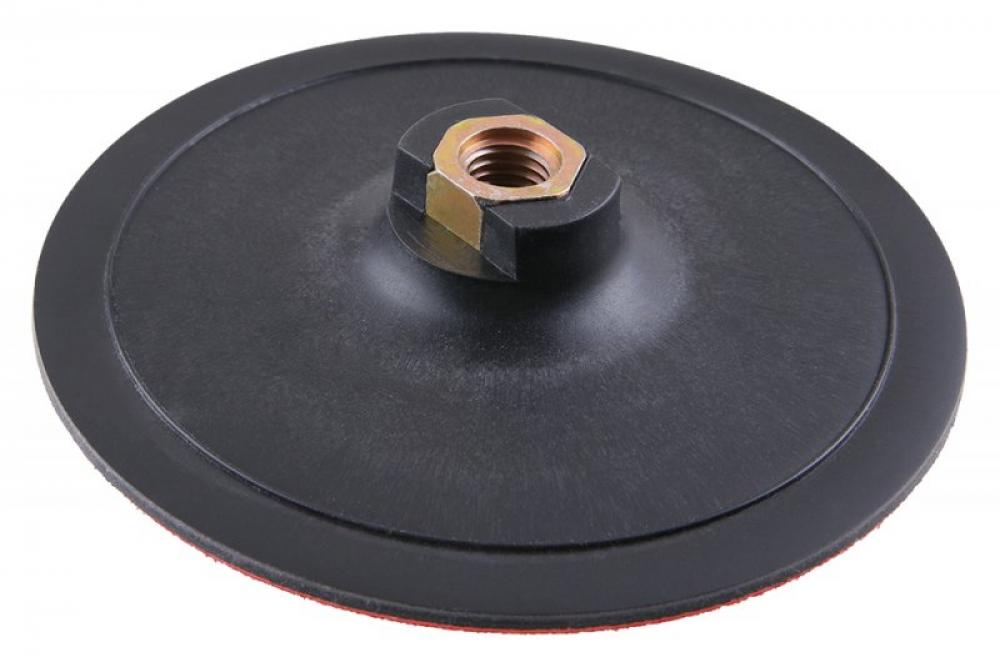 Unašeč smirkového papíru, pružná nosná deska, velmi dobré přizpůsobení broušenemu povrchu, závit M 14, použití : pro uchycení brusných výseků o průměru 150 mm, druh uchycení : suchý zip, balení : blistr s eurootvorem.