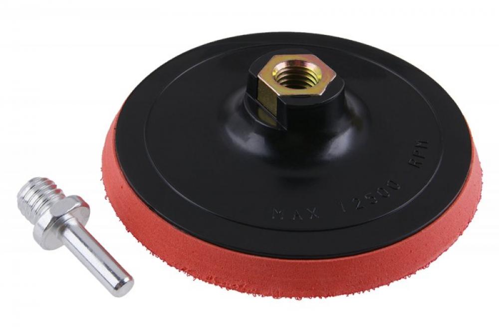 Unašeč smirkového papíru, pružná nosná deska, měkká elastická pěna EVA, velmi dobré přizpůsobení broušenemu povrchu, závit: M14, stopka - redukce M 14 / 8mm, použití : pro uchycení brusných výseků o průměru 125 mm, druh uchycení : suchý zip, balení : blistr s eurootvorem.