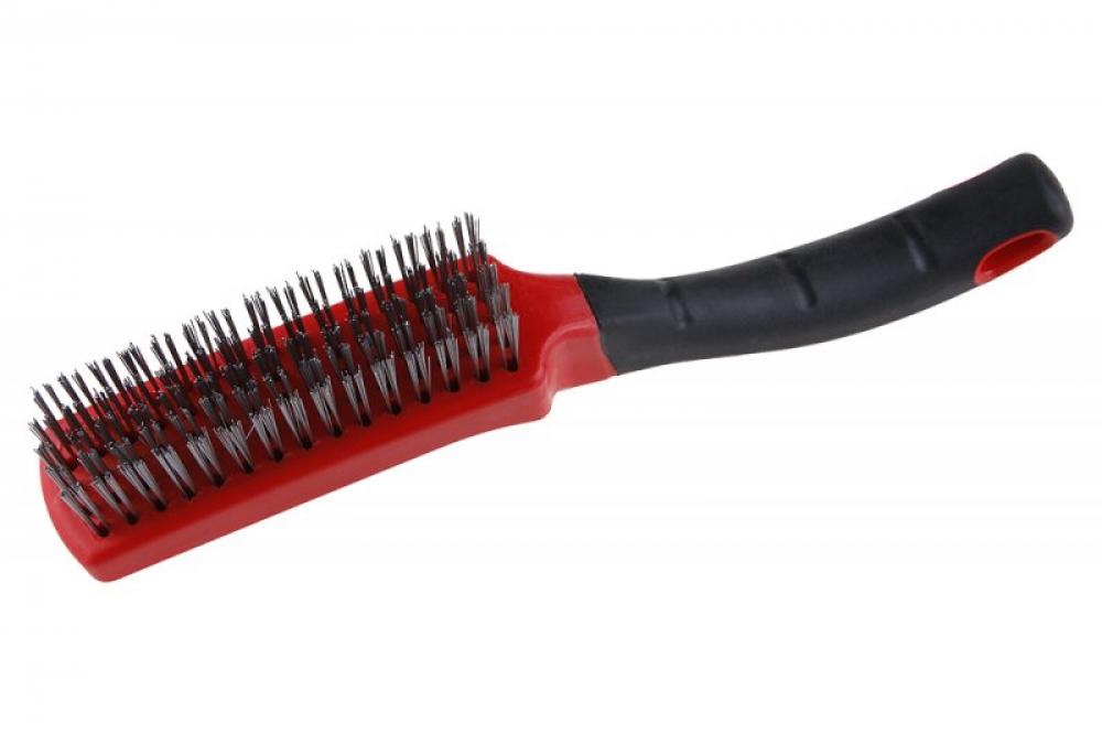 Ocelový kartáč - ruční, ocelový drát - pozinkovaný, plastové tělo, délka 270 mm, ergonomicky tvarovaná rukojeť, 5 řad, počet drátů : 1800, použití: k číštění železných kovů jako je ocel, nerez,...