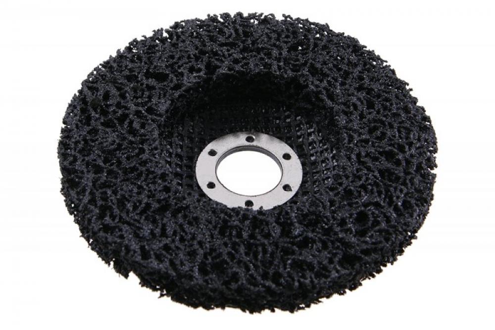 Nylonový brousící kotouč, podložka : sklotextilie, druh zrna: karbid křemíku / nylon, pojivo : pryskyřice, průměr : 125 mm, pro uchycení v úhlových bruskách 22,2mm, použití : odstranění starých nátěrů, broušení, čištění, balení : blistr s eurootvorem.