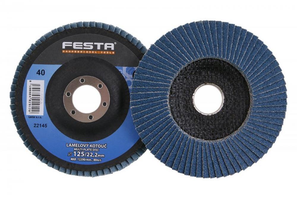 Zrnitost: 40 Druh Zrna: oxid zirkoničitý Pojivo: umělá pryskyřice Podkladový materiál: pružná tkanina-100% bavlna (240-260g/m2) Provedení: vyhnutý vnitřní průměr: 22,2mm Max. Pracovní rychlost: 80m/s Max. přípustné otáčky: 12200 1/min.